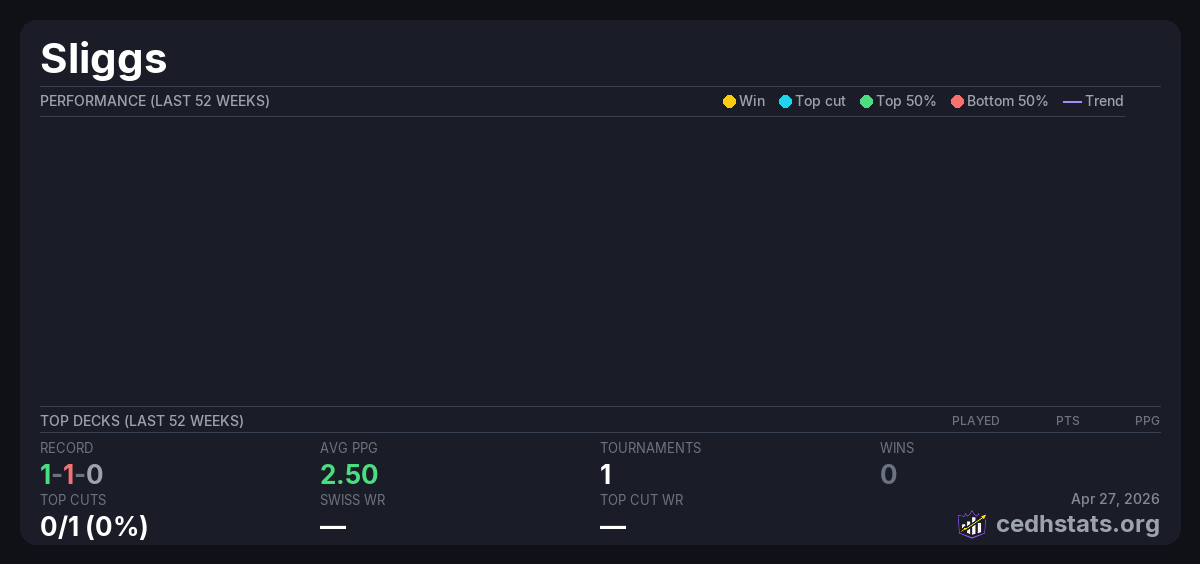 | Tournament | Deck | Result | Record | PPG | Points ? |