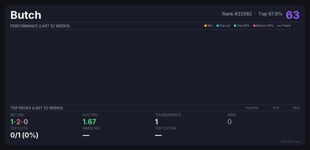 | Tournament | Deck | Result | Record | PPG | Points ? |