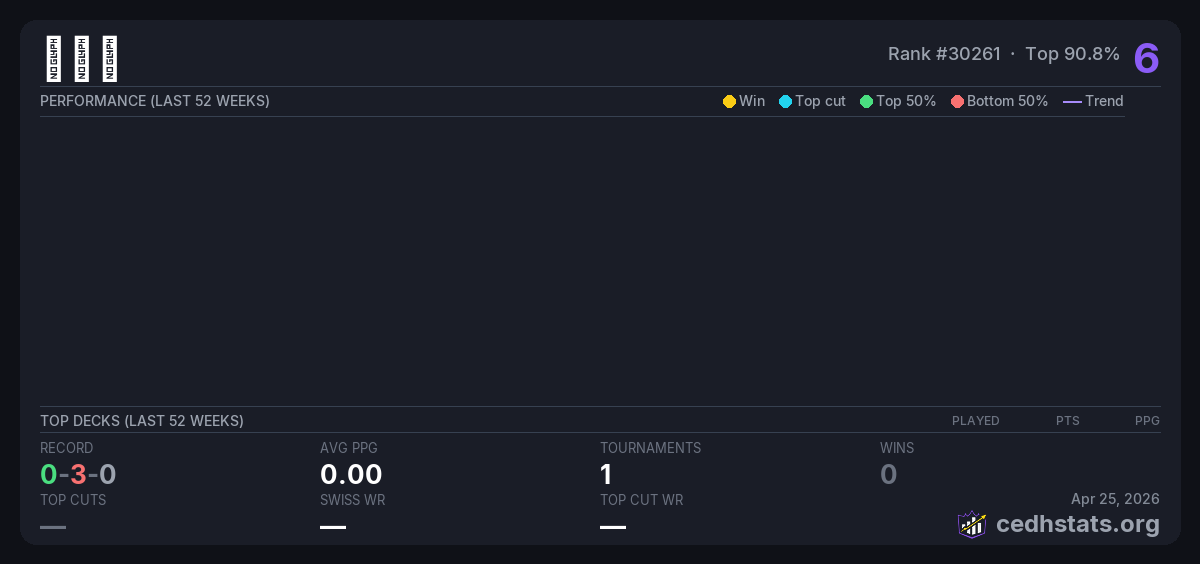 | Tournament | Deck | Result | Record | PPG | Points ? |
