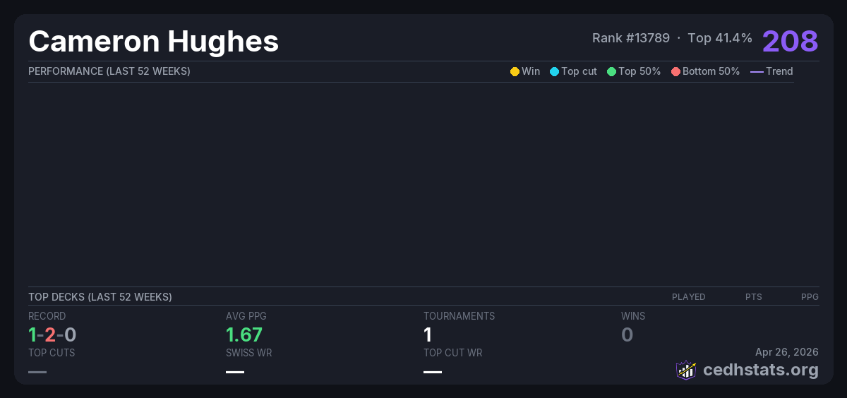 | Tournament | Deck | Result | Record | PPG | Points ? |