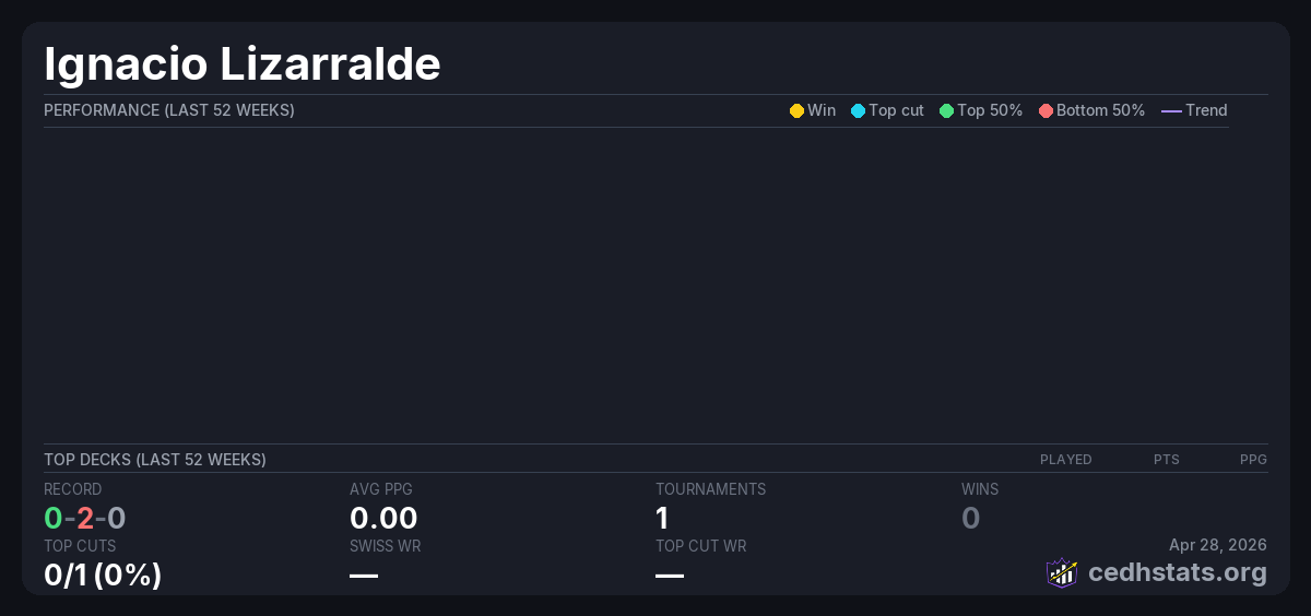 | Clasificatorio al Hall of Fame - Tercera Ronda Sep 28, 2025 · 22 players | Invalid pairing | 22/22 | 0-2-0 | 0.00 | — |