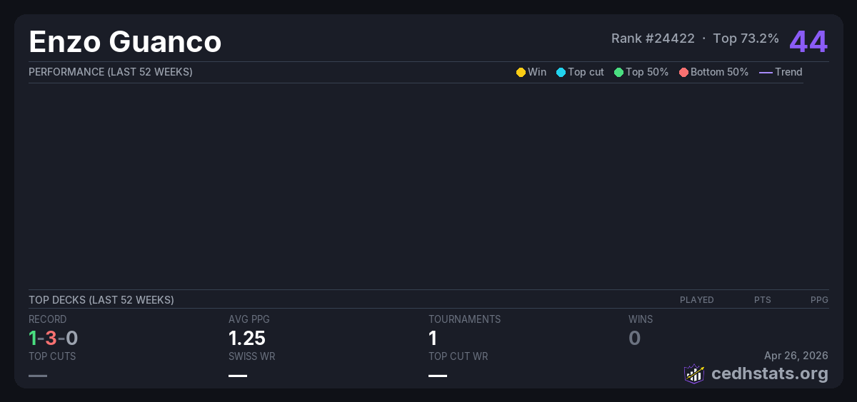 | EDH Quilmes Aug 23, 2025 | Invalid pairing | 12/19 | 1-3-0 | 44 |