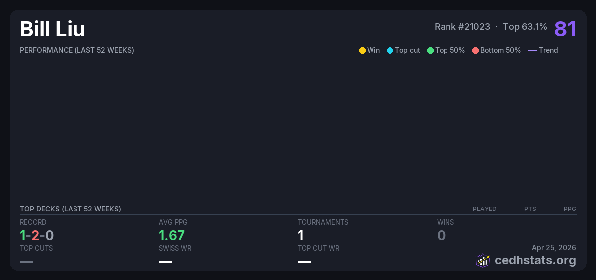 | Commander Weekly Wednesday 9/7/25 Jul 02, 2025 | — | 17/30 | 1-2-0 | 81 |