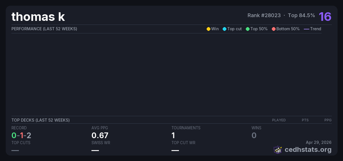 | Tournament | Deck | Result | Record | PPG | Points ? |