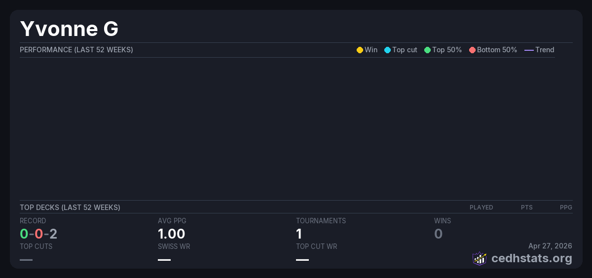 | Tournament | Deck | Result | Record | PPG | Points ? |