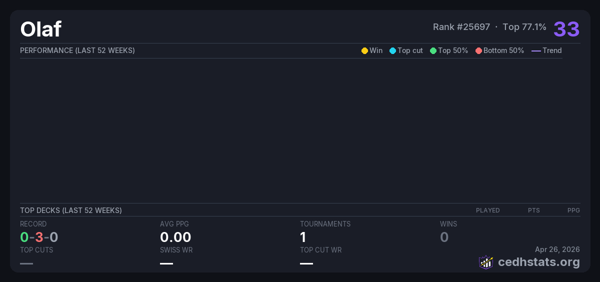 | bracket 3 tourney Dec 16, 2025 · 23 players | — | 16/23 | 0-3-0 | 0.00 | 33 |