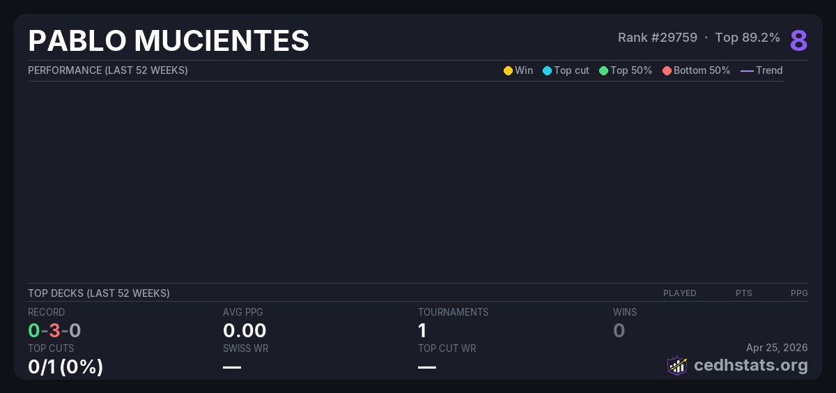 | CEDH HAMMER NOCTURNO Oct 18, 2025 | Invalid pairing | 19/22 | 0-3-0 | 8 |