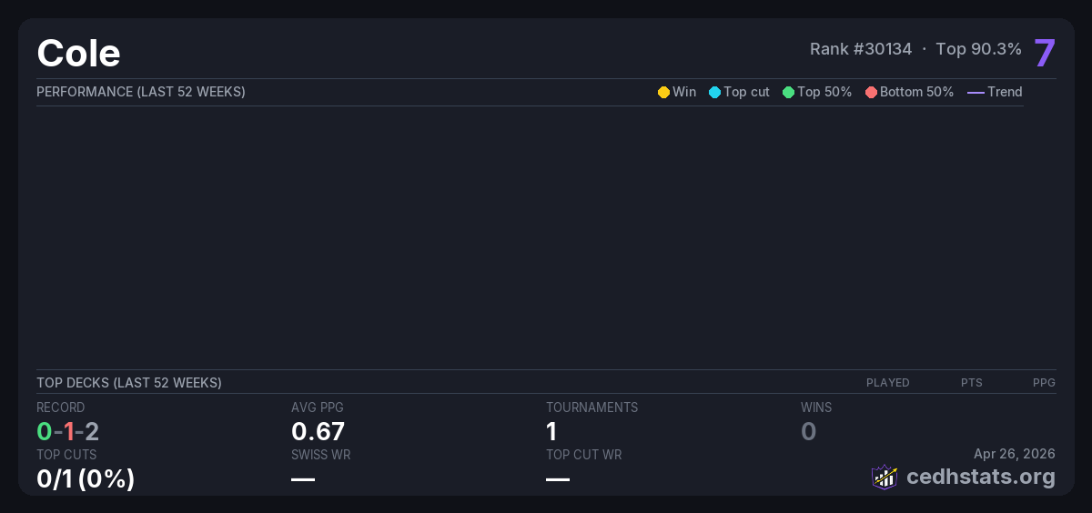 | Tournament | Deck | Result | Record | PPG | Points ? |