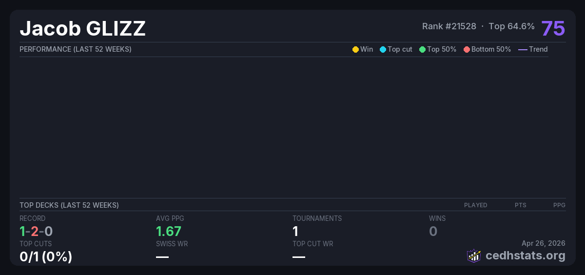 | Tournament | Deck | Result | Record | PPG | Points ? |