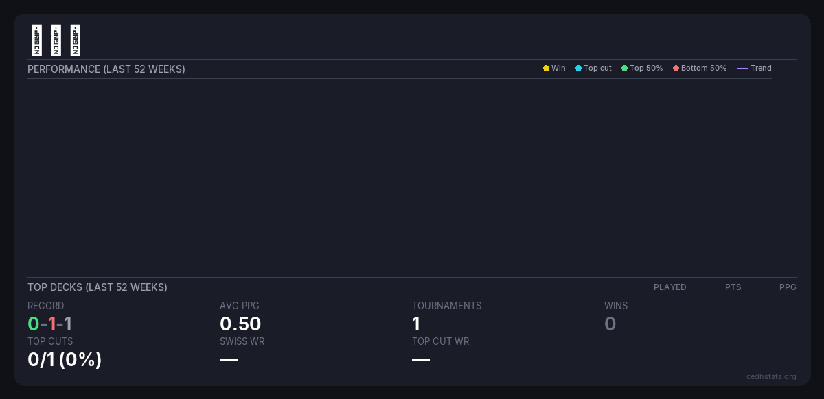 | Tournament | Deck | Result | Record | PPG | Points ? |