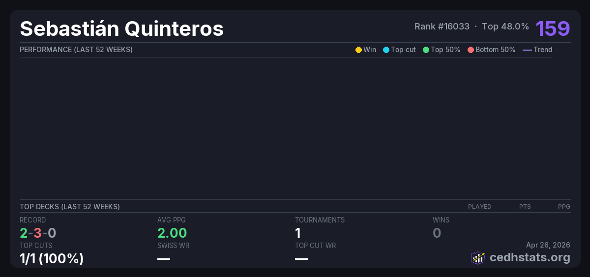 | 4to Torneo Tribal - Comunidad C3 Feb 28, 2026 | 4/17 | 2-3-0 | 160 | |