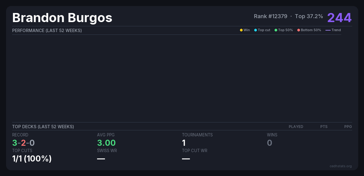 | Tournament | Deck | Result | Record | PPG | Points ? |