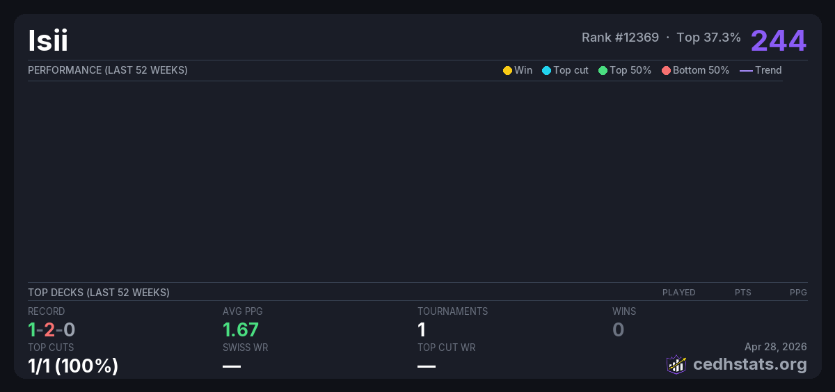 | Tournament | Deck | Result | Record | PPG | Points ? |